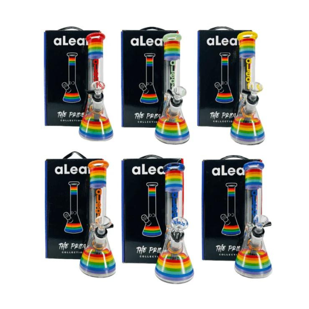 The 10-inch Aleaf Water Pipe Glass from the Pride Collection is a beautifully crafted beaker-style pipe designed for both functionality and style. Featuring vibrant, pride-themed colors, this glass water pipe stands out with its eye-catching design. The beaker shape ensures stability and provides a larger water capacity for smoother hits. Made from high-quality glass, it is durable and easy to clean, making it a perfect addition to any collection.