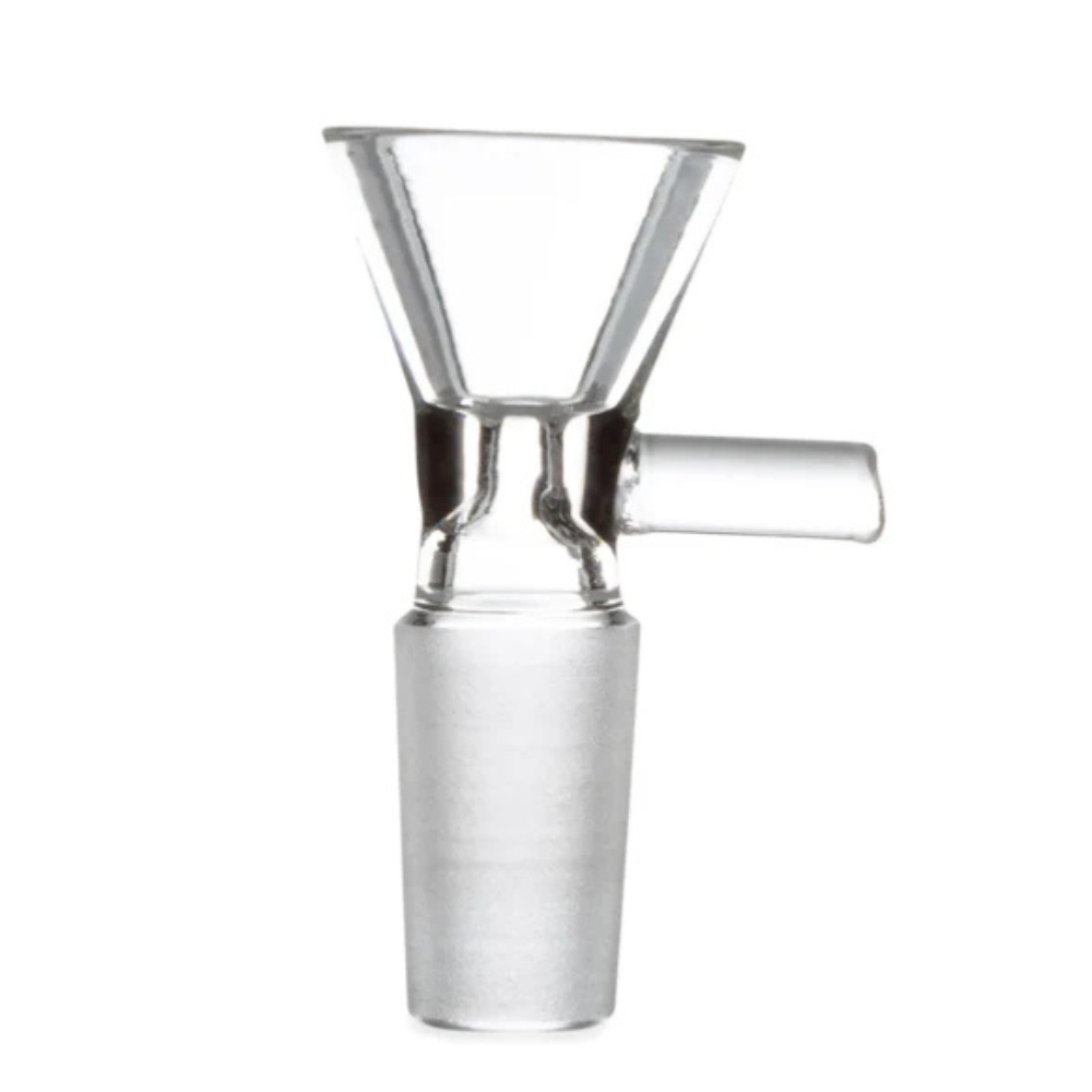 A 14mm Bowl with Handle is a glass bowl designed for use with 14mm male or female joints on a bong or rig. The handle provides a convenient way to handle and remove the bowl, making it easier to load and clear. This design is practical for both daily use and for handling hot glass safely.