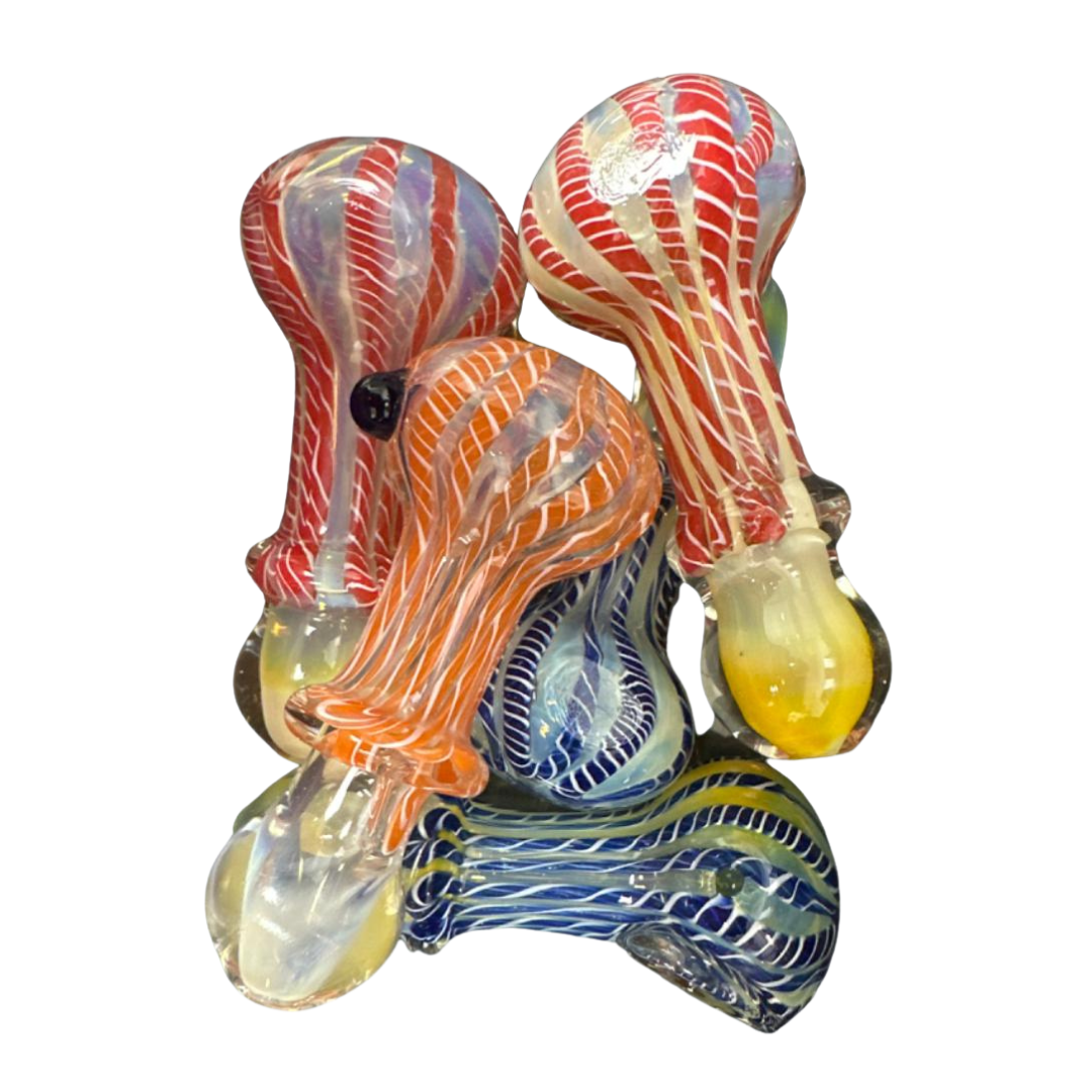 The 3-Inch Fancy Glass Hand Pipe, available in a pack of 5, features an elegant and intricate design. Its compact size makes it perfect for easy handling and portability, while the decorative glass work adds a touch of sophistication to your smoking experience.