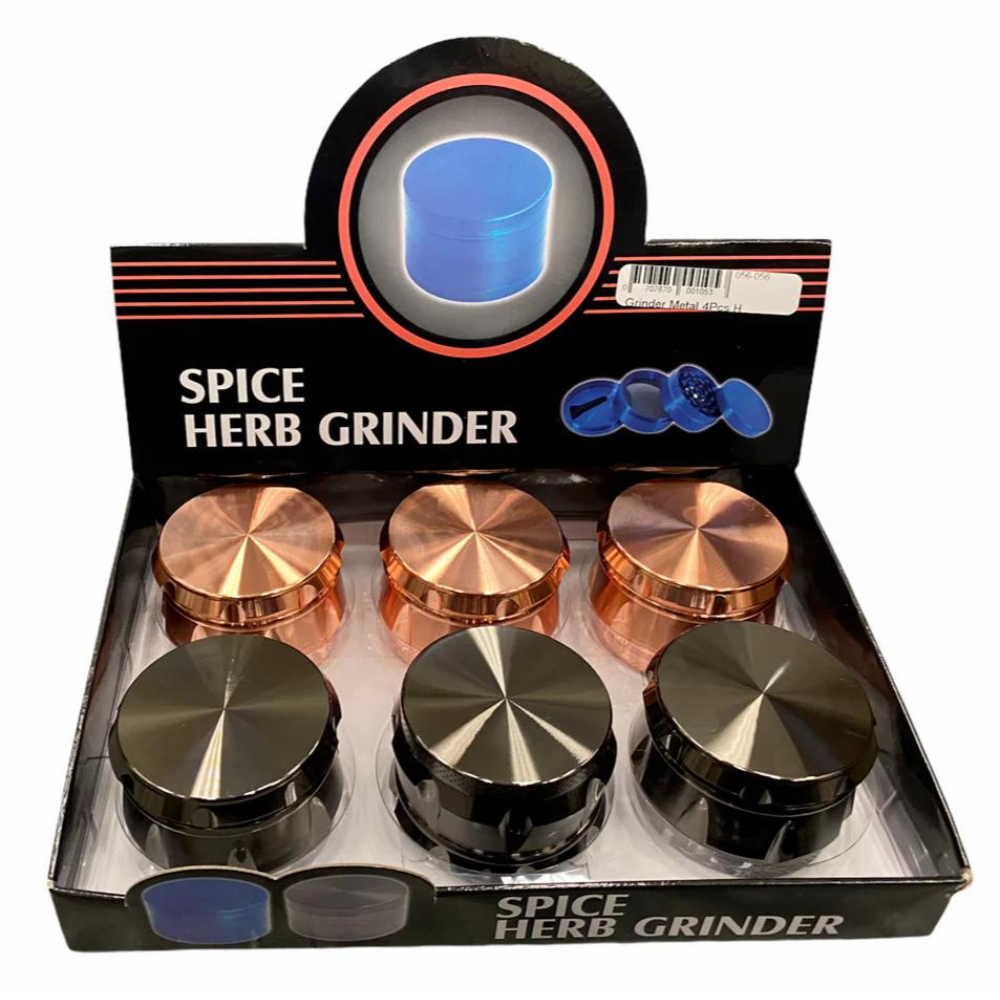 The 4-Piece Spice Herb Metal Grinder (Assorted Colors) – Display of 6 G27 is a practical and stylish addition to any herb grinder collection. Each grinder features a durable metal construction and comes in a range of vibrant colors. The 4-piece design includes a top compartment for easy loading, a grinding chamber with sharp teeth for efficient grinding, a screen for sifting pollen, and a bottom chamber for collecting the ground material. With its sturdy build and assorted color options, this display of 6 grinders is ideal for adding a touch of flair and functionality to any setup, whether for personal use or retail.