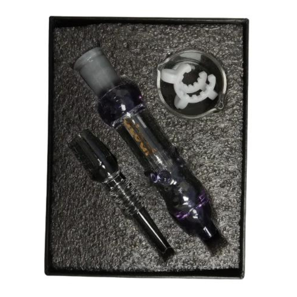 The 7-Inch ALEAF Glass Nectar Collector Kit is a versatile and portable dabbing tool designed for convenience and efficiency. This kit features a sleek glass design that ensures smooth vaporization and optimal flavor. The nectar collector allows you to precisely control your dabbing experience, and its compact size makes it perfect for on-the-go use. Whether you’re a seasoned user or new to dabbing, this kit provides everything you need for a seamless and enjoyable session. The assorted designs add a touch of uniqueness to each piece, making it a stylish addition to any collection.