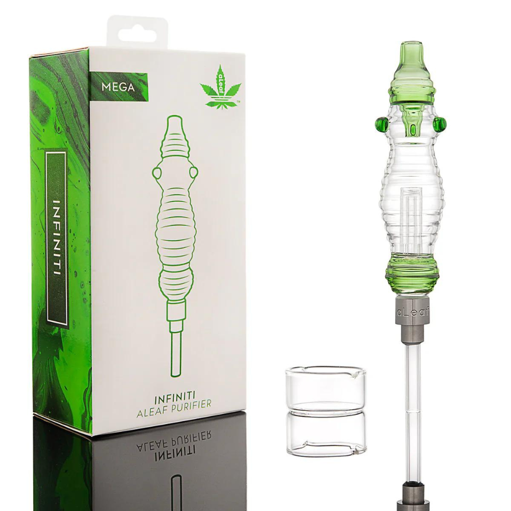 The Aleaf Mega Infiniti Purifier is a high-performance glass purifier designed for optimal filtration. Its large size and advanced filtration technology enhance the smoothness and purity of your smoke or vapor. The assorted design adds a stylish touch, while the durable glass construction ensures long-lasting use.