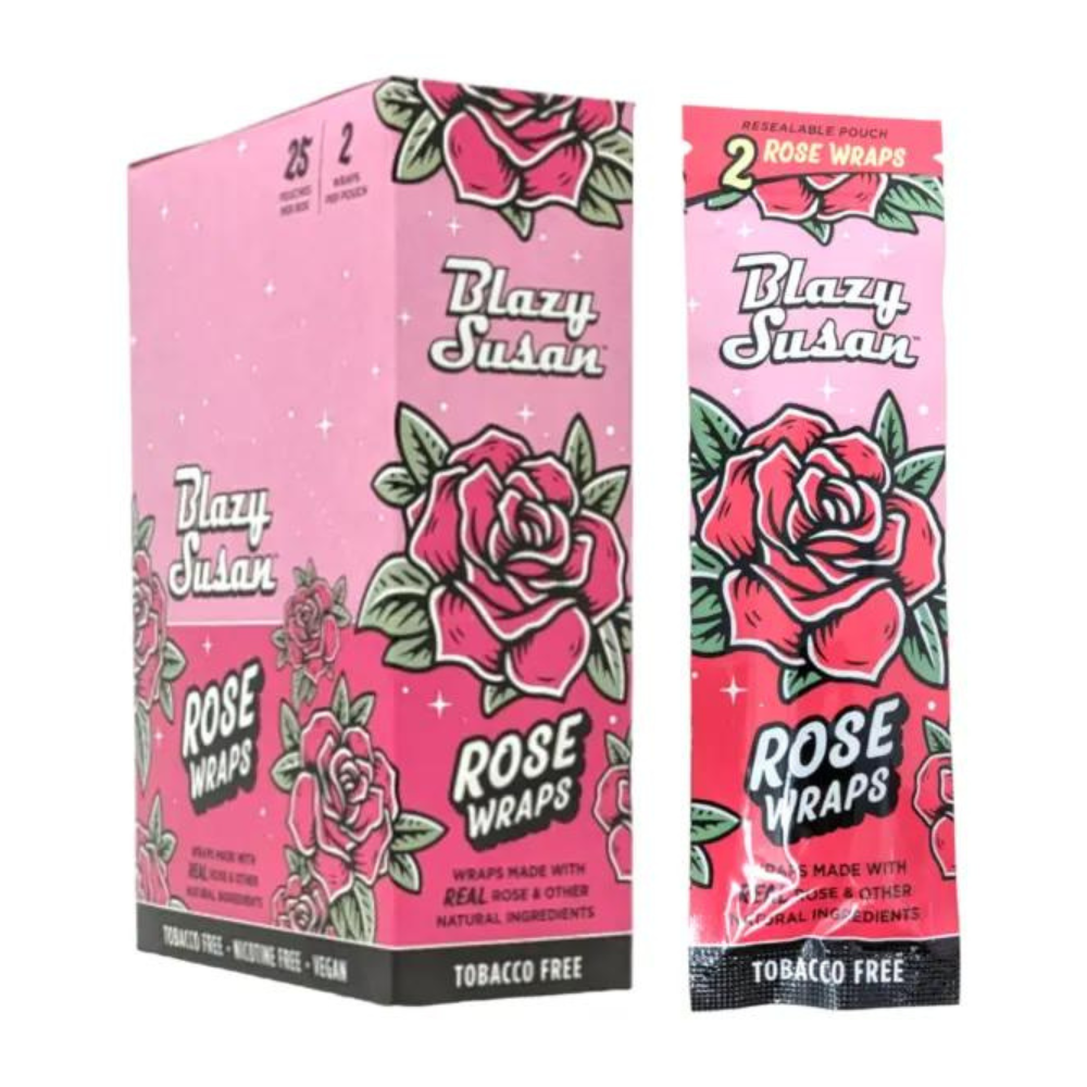 BLAZY SUSAN ROSE PRE-ROLL WRAPS MADE WITH REAL ROSE PACK OF 2 - DISPLAY OF 25