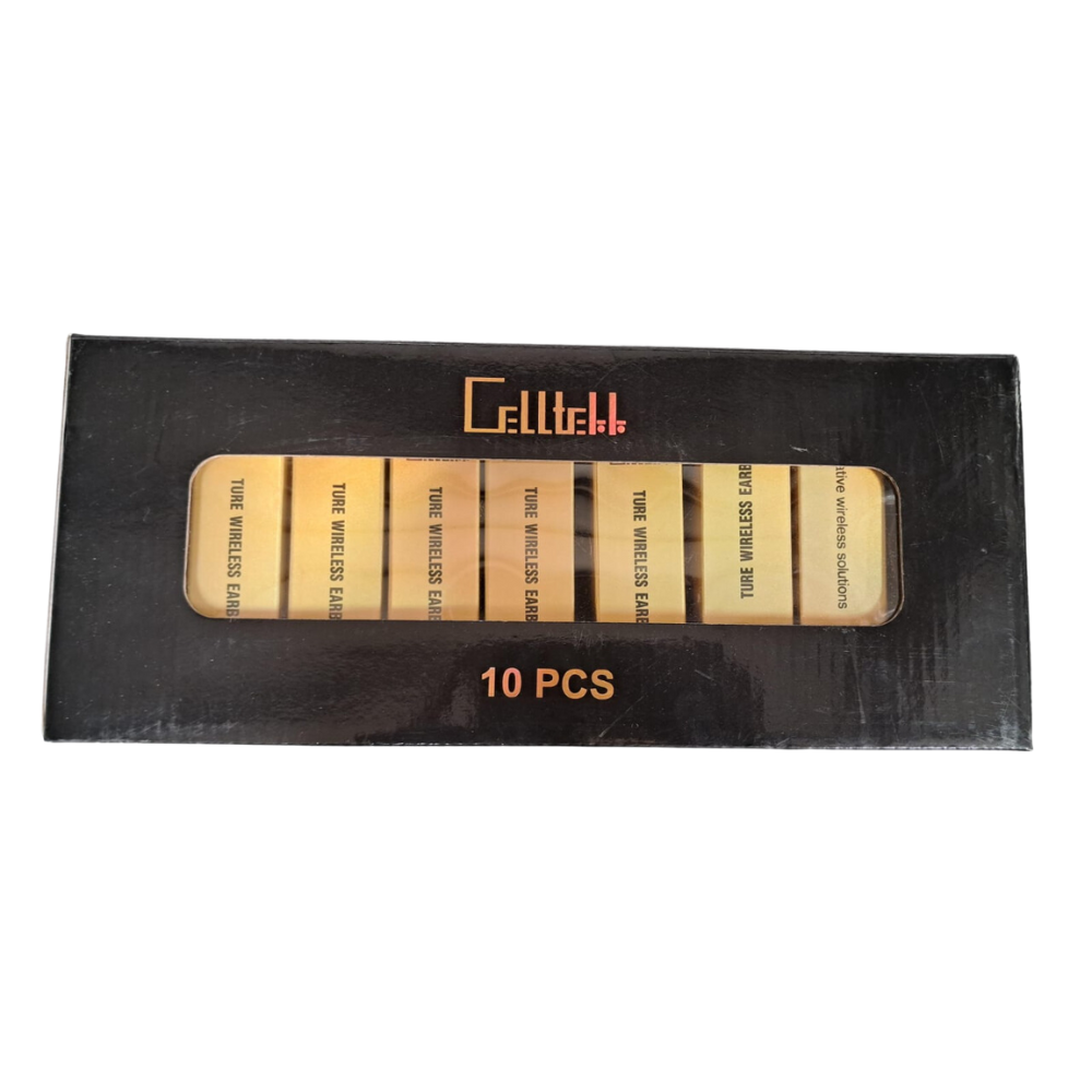 The Celltell True Wireless Earbuds offer a seamless audio experience with complete freedom from wires. These sleek and compact earbuds are designed for modern users who value convenience, style, and high-quality sound. With a secure fit and ergonomic design, they provide comfort for all-day wear, whether you're commuting, working out, or relaxing at home. This pack of 10 is ideal for families, group use, or retail distribution.