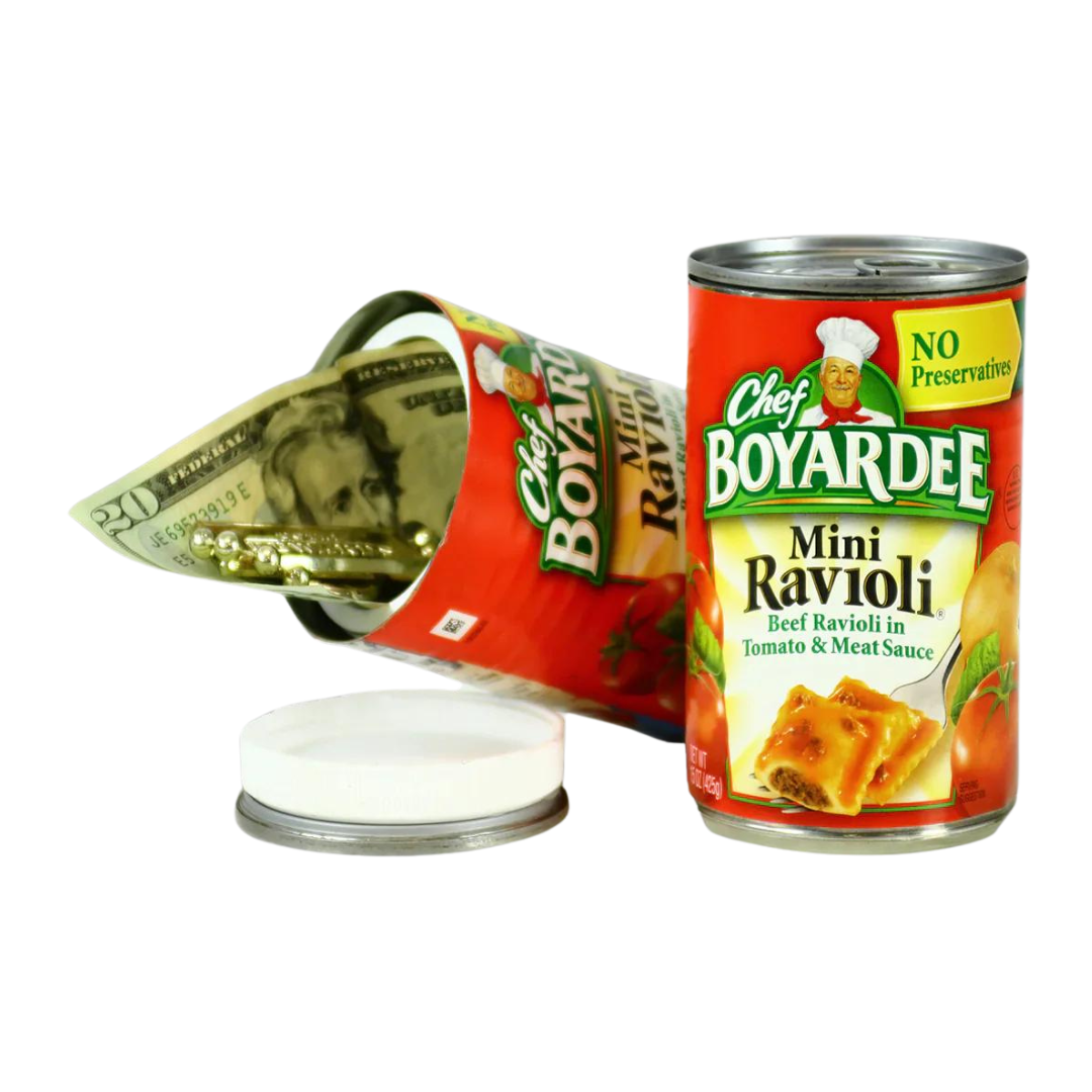The Chef Boyardee Safe Can is a cleverly designed stash container that resembles a genuine Chef Boyardee food can, offering a discreet way to store small valuables. This safe can features a realistic appearance with a hidden compartment inside, accessible by unscrewing the bottom. It’s perfect for concealing cash, keys, or other personal items while blending seamlessly with your pantry or kitchen supplies. Combining practicality with a touch of everyday realism, the Chef Boyardee Safe Can ensures your valuables are both secure and inconspicuous.