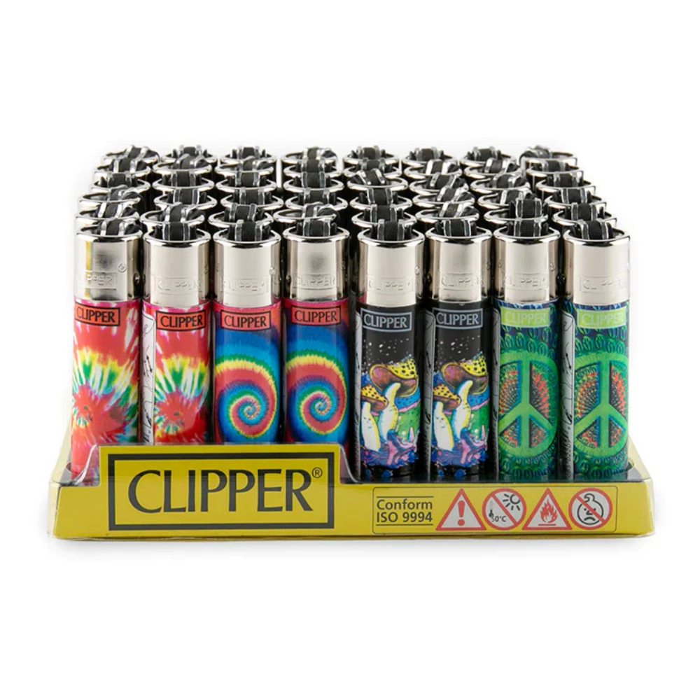 Clipper Lighters are available in a pack of 48. These lighters are known for their durability and refillability, featuring a built-in poker for easy cleaning and a removable flint for extended use. Ideal for everyday use, they come in various designs and colors.