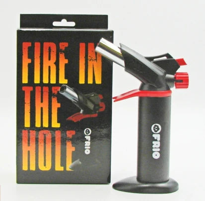 The Frio Fire in the Hole Torch (TR03) is a robust torch lighter designed for high-performance use. It features an adjustable flame for precision and versatility, making it ideal for lighting cigars, pipes, and other applications requiring a strong, reliable flame.