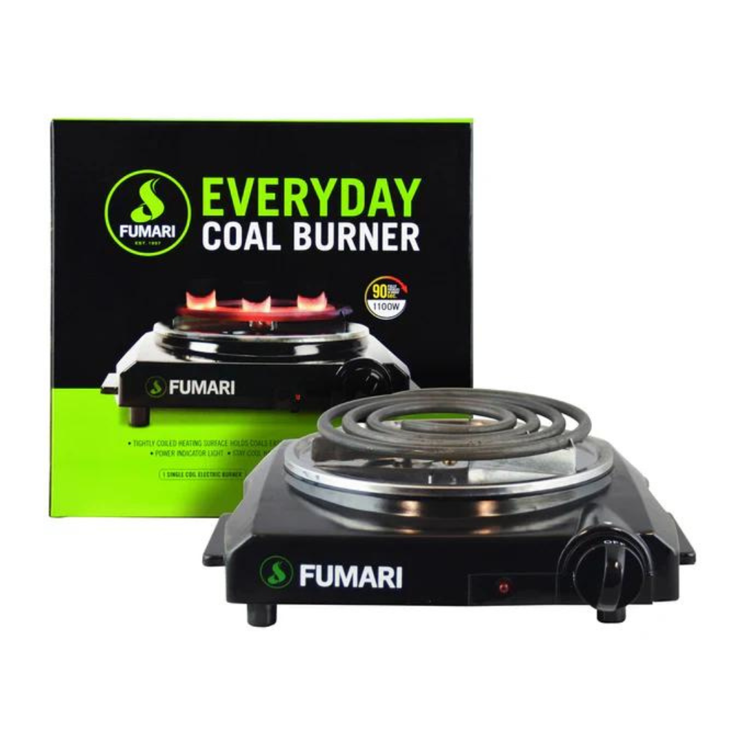 The Fumari Everyday Coal Burner is a powerful 1100W unit that heats up quickly, reaching optimal temperature in under 90 seconds. Its tightly coiled heating surface securely holds coal, while the adjustable temperature control allows for precise heat regulation. The burner features an on/off indicator light, various heat settings for convenience, and stay-cool handles for added safety. Lightweight and portable, this burner is ideal for efficient, on-the-go hookah sessions, combining fast heating with easy handling and portability.