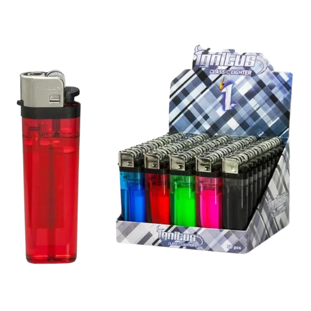 The Ignitus Cheap Lighter pack of 50 provides an economical solution for those needing a large quantity of reliable lighters. Each lighter is designed for everyday use, featuring a simple and effective ignition mechanism. Known for its affordability and functionality, this pack is perfect for various needs, from lighting candles and grills to camping or emergency use. The bulk pack ensures you have a steady supply, making it ideal for both personal use and business applications. With Ignitus, you can count on consistent performance at a budget-friendly price.