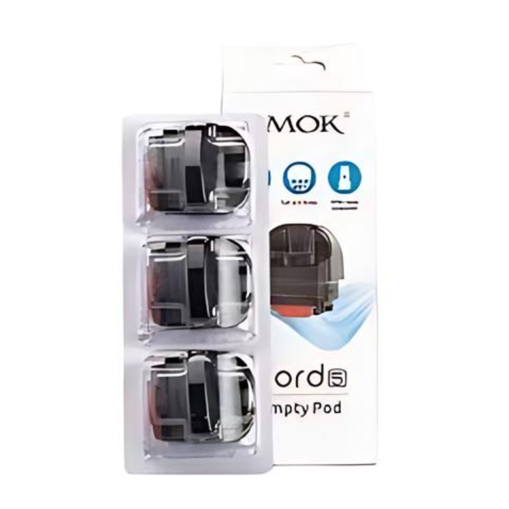 The SMOK Nord 5 5ml Empty Pods come in a pack of 3. These pods are designed specifically for the SMOK Nord 5 pod system and feature a 5ml e-liquid capacity, allowing for longer vaping sessions between refills.