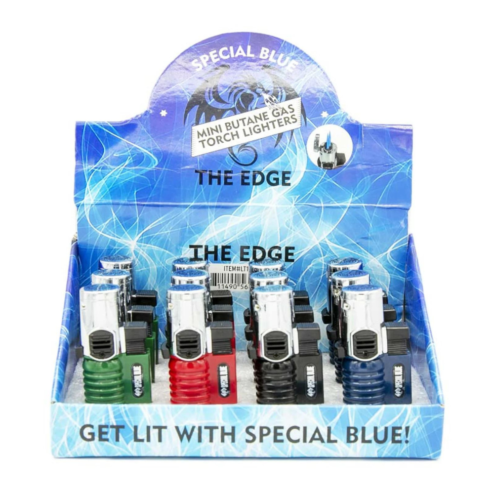 SPECIAL BLUE MINI BUTANE GAS EDGE DUAL FLAME LIGHTER - PACK OF 12