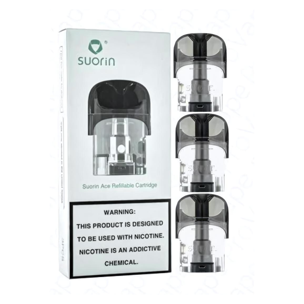 The Suorin Ace 2ML Refillable Replacement Cartridge Pod is a pack of three refillable pods designed for the Suorin Ace pod system. Each cartridge has a 2ML e-liquid capacity and is crafted to ensure a leak-proof design and optimal flavor delivery. These pods are perfect for users looking to replenish their vaping setup with fresh, reliable cartridges.