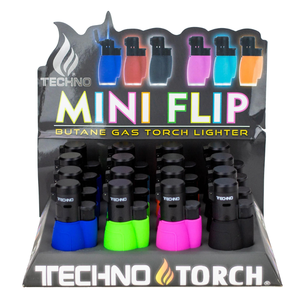 TECHNO MINI FLIP BUTANE GAS TORCH SINGLE FLAME LIGHTER - PACK OF 16