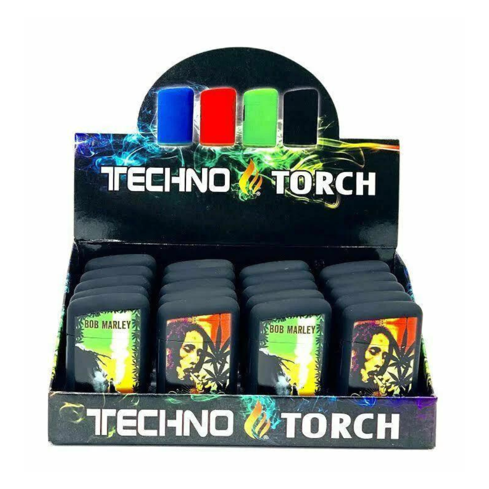 TECHNO TORCH BOB MARLEY FLIP TOP BUTANE LIGHTER TORCH - PACK OF 20