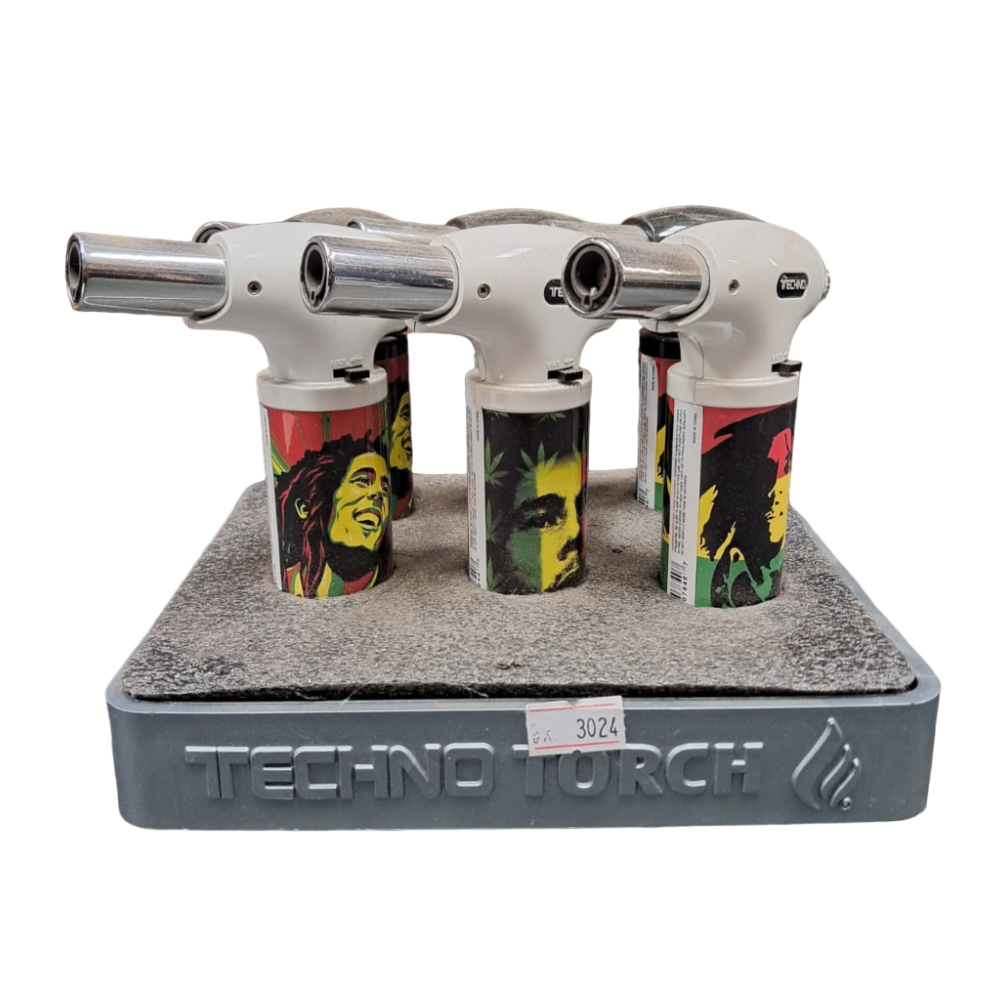 The Techno Torch Bob Marley Lighter is available in a pack of 6. Each lighter features iconic Bob Marley artwork, adding a touch of style and personality. It offers reliable ignition with a single flame, making it suitable for a range of uses. The refillable design ensures long-lasting functionality, while the compact size provides ease of use and portability. Perfect for personal use or as a distinctive retail item, the Techno Torch Bob Marley Lighter combines practical performance with a tribute to a legendary figure.