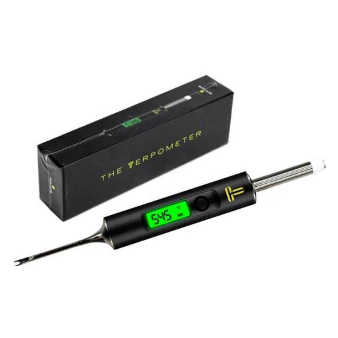 The Terpometer is the world’s first 710 thermometer, offering precise temperature readings for optimal dabbing. Its LCD screen displays the exact surface temperature upon contact, while patented RGB color technology lights up green to indicate the perfect temperature for applying extracts, ensuring optimal effects and flavor. The package includes the Terpometer, a USB charger, and an instruction manual, providing everything needed for an exceptional dabbing experience with unparalleled temperature accuracy.