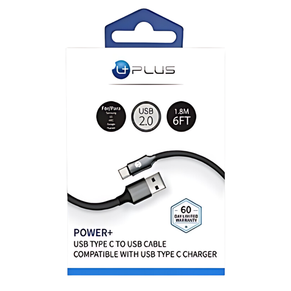 The Uplus Power+ USB Type C to USB Cable in black is a versatile and high-performance cable designed to meet all your charging and data transfer needs. Measuring 6 feet in length, it provides ample reach and convenience, allowing you to use your device comfortably while it charges. Its durable build and sleek black finish make it both a practical and stylish addition to your tech accessories.