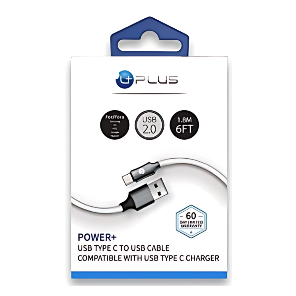 The Uplus Power+ USB Type C to USB Cable offers an efficient and stylish solution for connecting your USB Type-C devices. With a generous 6-foot length, this cable provides ample reach for comfortable device use while charging or transferring data. Its sleek white design enhances the aesthetic of your tech setup, while its robust build ensures reliable performance.