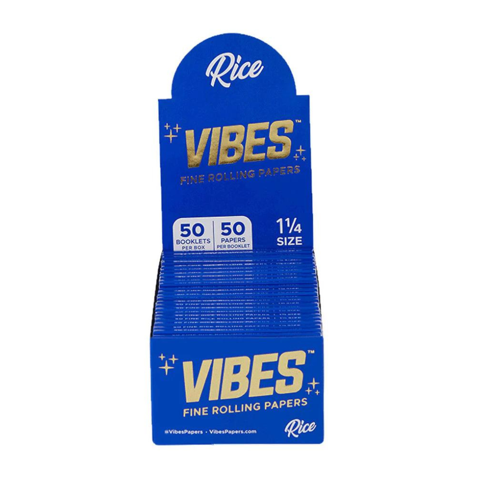 VIBES RICE 1 1/4 SIZE FINE ROLLING PAPERS 50 BOOKLETS PER BOX / 50 SHEETS PER BOOKLET
