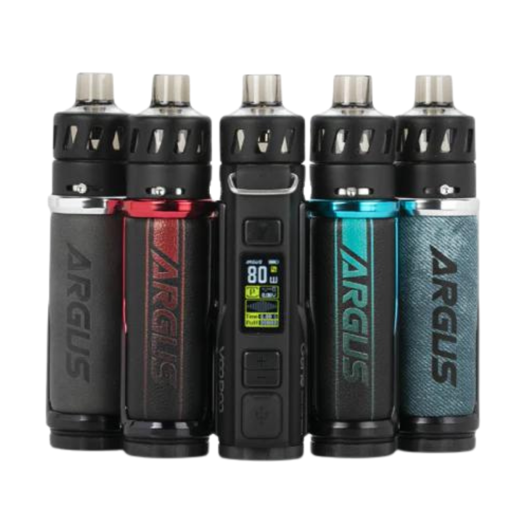 Shop the VOOPOO Argus Pro 80W Pod Mod Kit, a sophisticated vaping device equipped with the advanced GENE.TT Chipset for a powerful and customizable experience. Crafted from durable zinc-alloy and accented with leather, the Argus Pro offers a premium handfeel and ergonomic design. Its lanyard attachment point adds convenience for on-the-go use. The kit features various output modes to protect your coil from burning and allows for precise wattage adjustments. With a Type-C USB port at the base for fast charging and firmware updates, and a magnetic connection at the top for easy attachment of PnP Pods and coils, the Argus Pro supports both MTL and DTL vaping styles. This versatile pod mod kit delivers exceptional performance and flexibility for all vaping preferences.